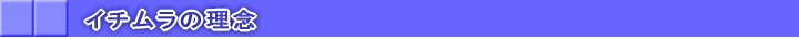 | イチムラの理念は 「お客様の想いを大切にし、共に幸せを築く。」 です 行動指針としましては ● 私たちは、お客様との出会いを「よっぽどのご縁」と考え、皆様の幸せな生活 のために一生涯のお付き合いを目指します。 ● 私たちは、すべての人に謙虚な態度で接し、、相手の立場になって考え、 互いの成長のため努めます。 ● 私たちは、積極的思考の中で明確な目標を持ち、「原因・反省・改善・効果」を 考え、必ず次へ繋げます。 ● 私たちは、「すべてはお客様からお預りしている」という認識の中で全員が 感謝をし、責任を持って携わります。 ● 私たちは、お客様のためにはならない事は、妥協することなく徹底的に 排除・是正します。 |